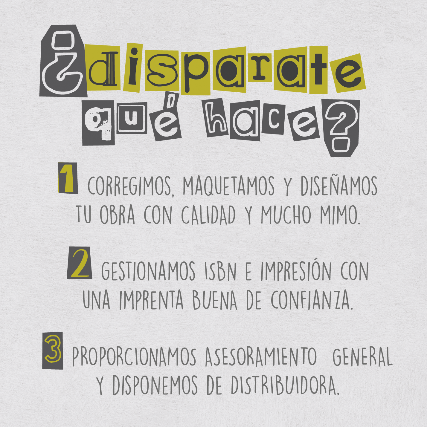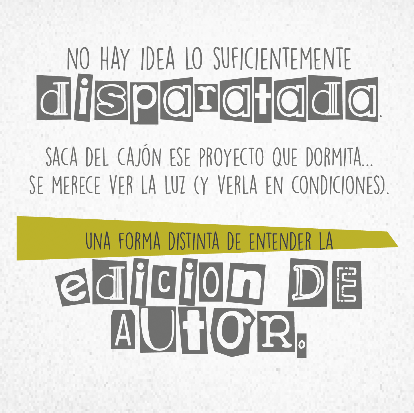Disparate Ediciones nace de la necesidad de dar servicio a todos esos autores que deciden otra vía de publicación.